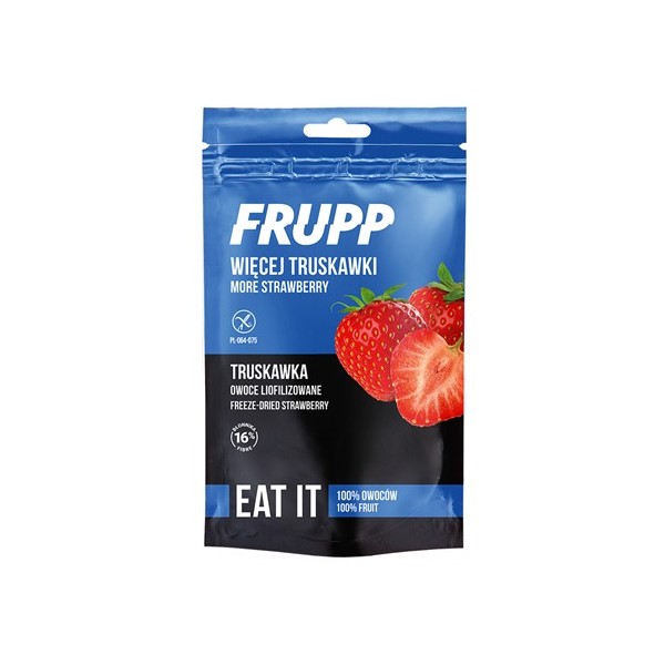 Liofilizowane owoce i warzywa FRUPP to naturalny produkt, który nie zawiera jakichkolwiek dodatków, barwników i konserwantów. Jest on produkowany z wykorzystaniem liofilizacji – techniki bardzo bezpiecznej dla wartości odżywczych zawartych w owocach i warzywach. To wyjątkowa i smaczna przekąska dla osób dbających o zdrowie, marzących o pięknej i smukłej sylwetce oraz prowadzących aktywny tryb życia. Ze względu na atrakcyjne i wygodne opakowanie stanowi wyjątkową alternatywę dla wysokokalorycznych słodyczy i słonych przekąsek. Produkty Frupp oznaczone są symbolem przekreślonego kłosa, który nadawany jest przez Europejski System Licencyjny. Program ten jest prowadzony przez Europejskie Zrzeszenie Stowarzyszeń Osób z Celiakią. Wyroby posiadające ten symbol, nie zawierają więcej niż 20 ppm glutenu (0,02 %) co potwierdzają badania w akredytowanym laboratorium.