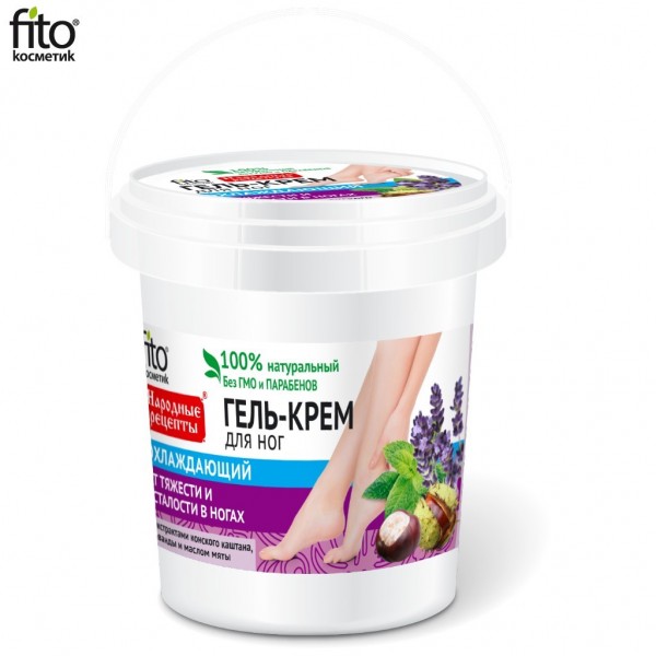 Naturalny Żel - krem odżywczo- chłodzący do stóp. Stworzony na bazie ekstraktu końskiego kasztana, olejku mięty oraz lawendy. Żel - krem skutecznie pomaga zlikwidować zmęczenie nóg. Delikatna struktura kremu natychmiast wchłania się i neutralizuje uczucie zmęczenia i ciężkości w nogach.