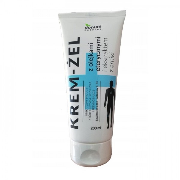 KREM-ŻEL z olejkami eterycznymi i ekstraktem z arniki - unikatowy produkt, który odżywia, rozluźnia i przynosi ulgę. Zawiera kolagen i witaminy E, B5.
