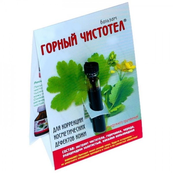 W swym składzie zawiera cenne substancje, takie jak sok z glistnika oraz zioła bajkalskie między innymi mięta, mniszek, borówka czarna oraz brusznica, różeniec górski, krwawnik, macierzanka, dziurawiec, pokrzywa, nagietek. Ekstrakt poprzez swoje właściwości wspomaga usuwanie brodawek oraz wypalanie kurzajek. Przeznaczony jest do oczyszczania i pielęgnacji skóry, pomaga usunąć brodawki i suche modzele. Glistnik usuwa defekty skórne różnego pochodzenia. Mieszanka ziół działa dezynfekująco i wysuszająco, uspokaja i zmiękcza skórę.