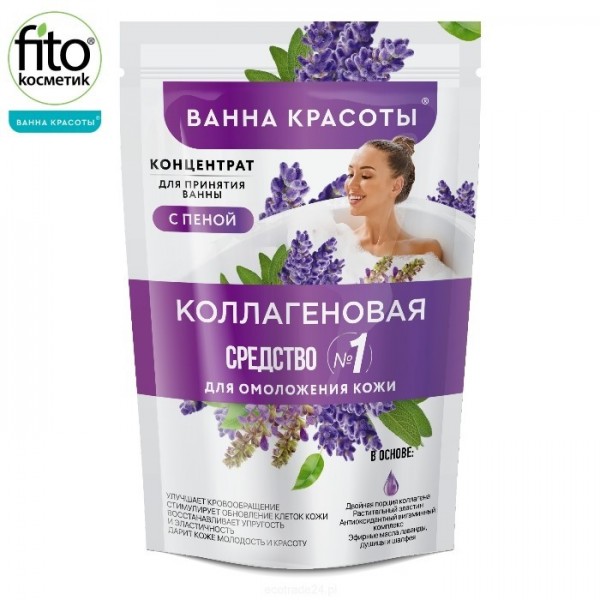Kolagenowa kąpiel to intensywna pielęgnacja przeciwstarzeniowa skóry, nasyca skórę witaminami i kolagenem, wygładza i zmiękcza skórę. Bonus - lekki kwiatowy zapach, piana i przyjemność kąpieli.
