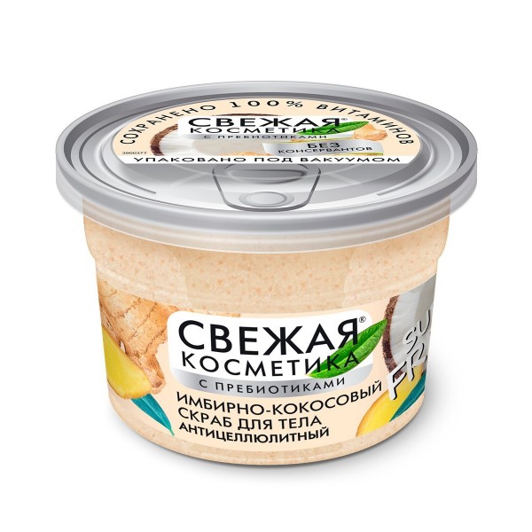 Peeling do ciała na bazie olejku z kokosa i ekstraktu z imbiru. Skutecznie wspomaga walkę z cellulitem, zapewniając skórze aksamitną gładkość. Zawiera probiotyki, który dbają o skórę poprzez kompleksowe działanie: stymulują odbudowę jej bariery ochronnej, dogłębnie ją nawilżają oraz poprawiają jej poziom ujędrnienia.