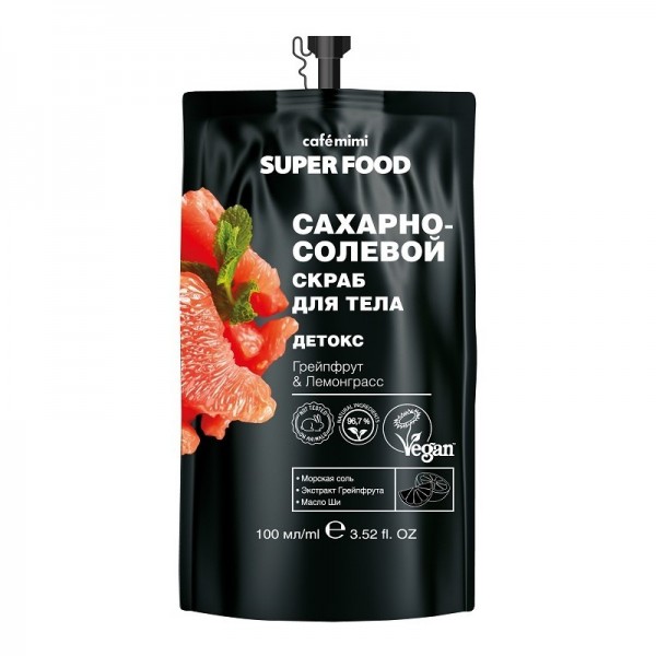Peeling do ciała SUPER FOOD to delikatne oczyszczenie i masaż Twojego ciała. Pełen naturalnych składników produkt złuszczy martwy naskórek i poprawi mikrokrążenie krwi. Peeling cukrowo-solny z ekstraktami grejpfruta i trawy cytrynowej zapewni detoks i regeneracje skóry.