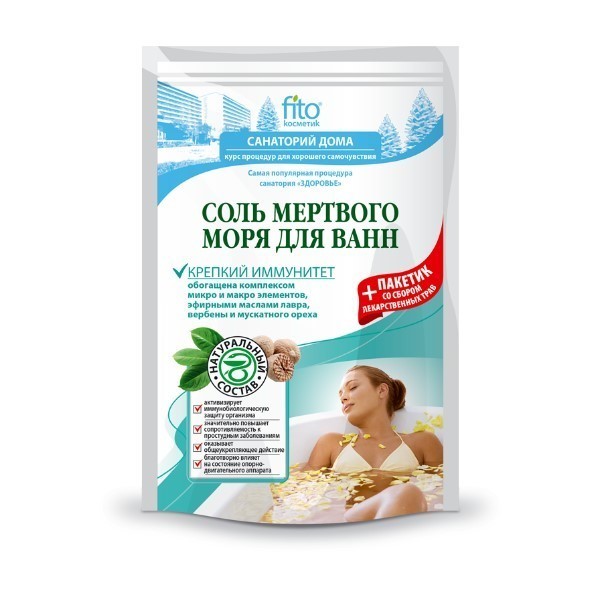 Sól do kąpieli z Morza Martwego niesamowicie wzmacnia odporność organizmu dzięki zawartemu w składzie bogatemu kompleksowi mikro- i makroelementów oraz olejkom eterycznym z liści laurowych, werbeny i gałki muszkatołowej.