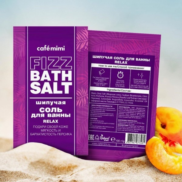 Musująca Sól do Kąpieli RELAX, zawiera Olejek eteryczny z lawendy uspokaja układ nerwowy i relaksuje. Ekstrakt z brzoskwini nawilża i odżywia skórę. Sól morska głęboko nasyca skórę pożytecznymi minerałami, zapewnia efekt detoksykacji.